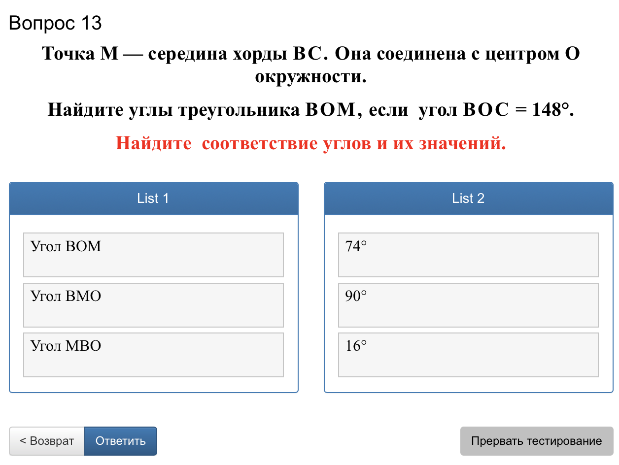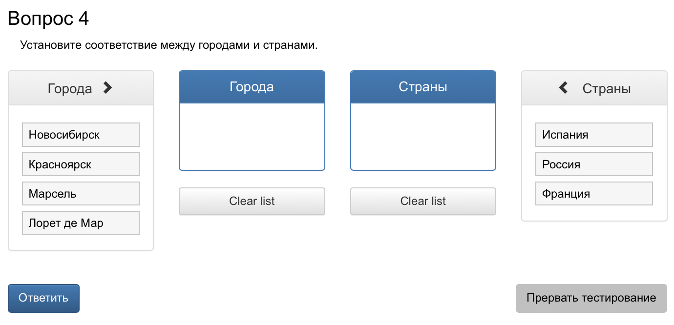 Для ответа на этот тип вопроса нужно упорядочить два списка таким образом, чтобы образовались верные пары соответствия в правом и левом столбце.