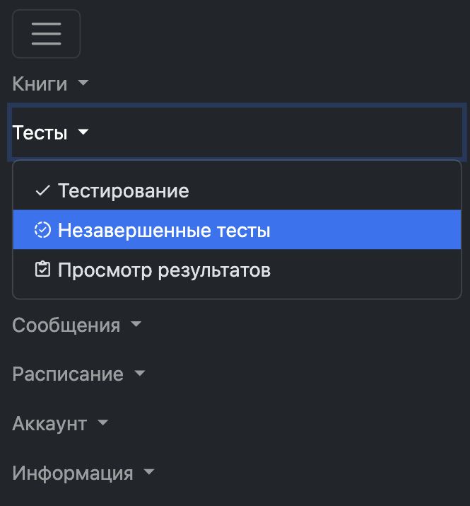 Верхнее меню используется для доступа ко всем функциям программы. На мобильных устройствах верхнее меню сворачивается в иконку в виде гамбургера (Рисунок 3).